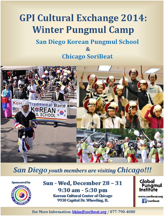 풍물 겨울 workshop 이 2014년 12월 28일 부터 12월 31일 사이에 시카고 한인 문화 회관 에서 있었습니다.