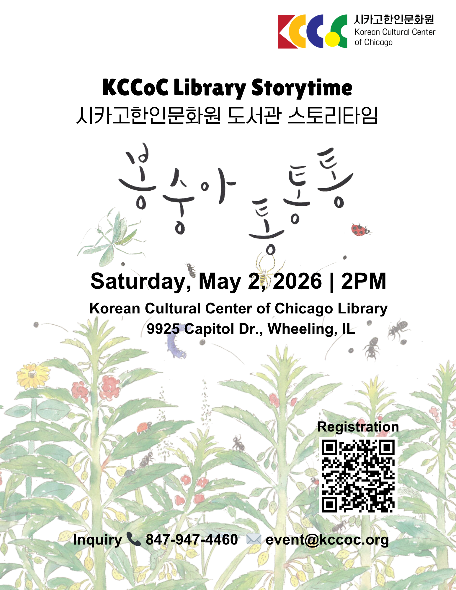 In the afternoon on the day of the Korean Cultural Center of Chicago (KCCoC)’s 4th Student Art Contest, the KCCoC Library will host a storytime session, “Bongsunga Tong Tong Tong.”