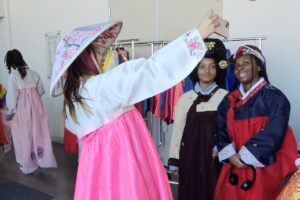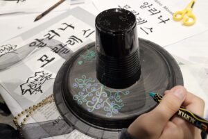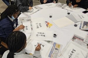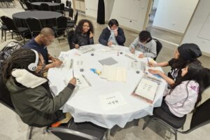 Students from Intrinsic High School, along with their teachers, visited the KCCoC. They toured the museum’s Maps of Joseon Korea exhibition and the contemporary Korean ceramics exhibition, and explored the gallery and library. At BISCO Hall, they experienced traditional crafts, including making a gat (traditional Korean hat), practicing calligraphy to write their names in Hangul, and trying on hanbok.